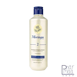 شامپو مغذی و انرژی بخش 2 مورینگا امو مناسب موهای معمولی است. این محصول با ترکیب روغن گیاه جوجوبا و کافئینی که دارد، سلامت پوست سر و موها را تضمین میکند.