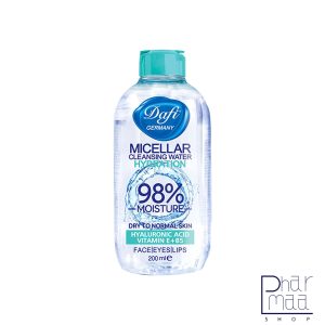 میسلار واتر دافی پوست خشک را به منظور پاک کردن آرایش از صورت، چشم و لب خود میتوانید استفاده کنید. این محصول مناسب پوستهای نرمال تا خشک بوده و حاوی هیالورونیک اسید، ویتامین E و B5 است.