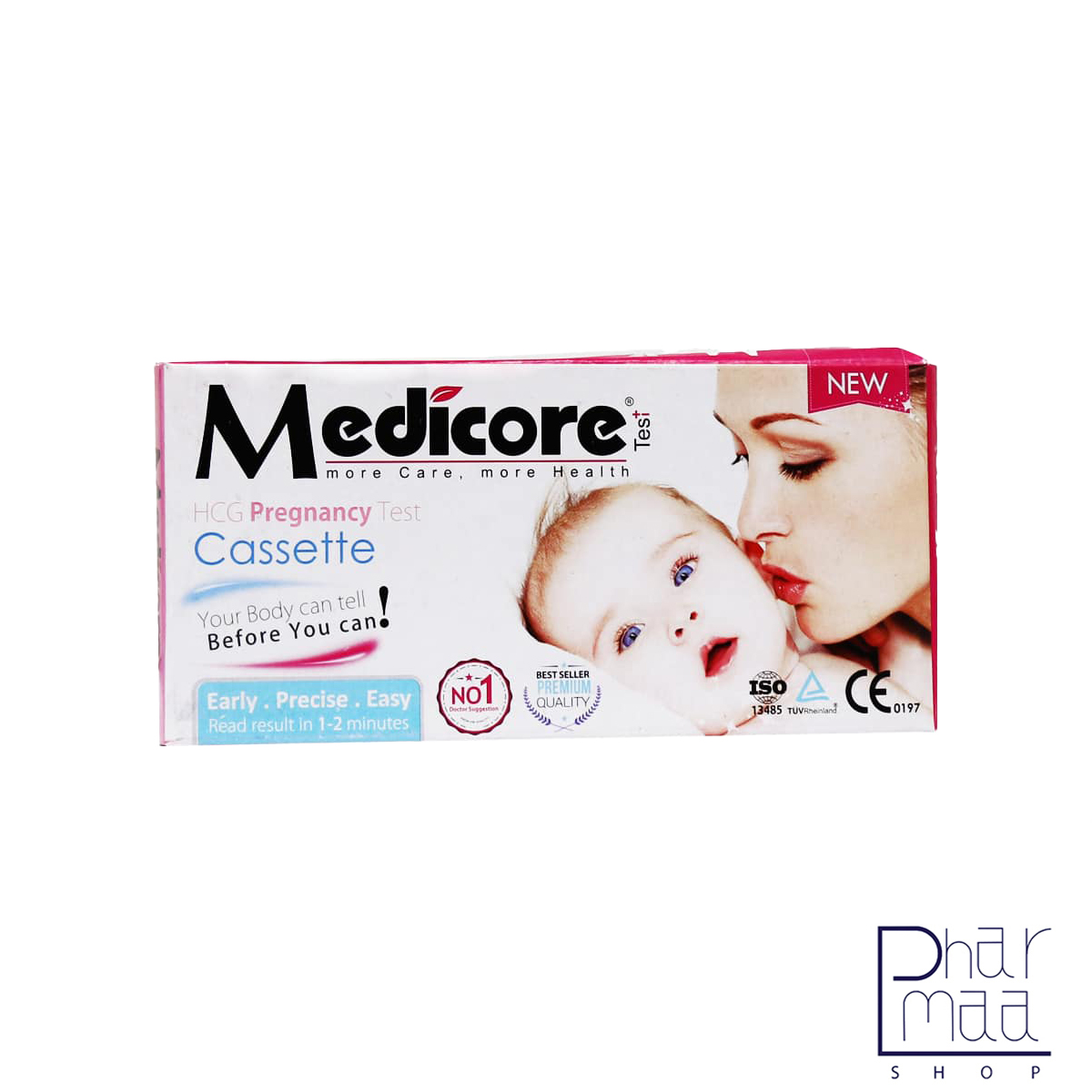 زمان مشاهده نتیجه تست این تست بارداری، بین ۱ الی ۲ دقیقه بوده و دقت آن ۹۹.۸ ٪ صحیح است. استفاده از آن بسیار ساده بوده و میتوانید مراحل آن را از روی راهنمای تصویری محصول مطالعه کنید. بی بی چک مدیکور داری یک کاست و یک قطره چکان برای برداشتن نمونه ادرار است که فقط برای یکبار میتوان از آن جهت تشخیص بارداری استفاده کنید.