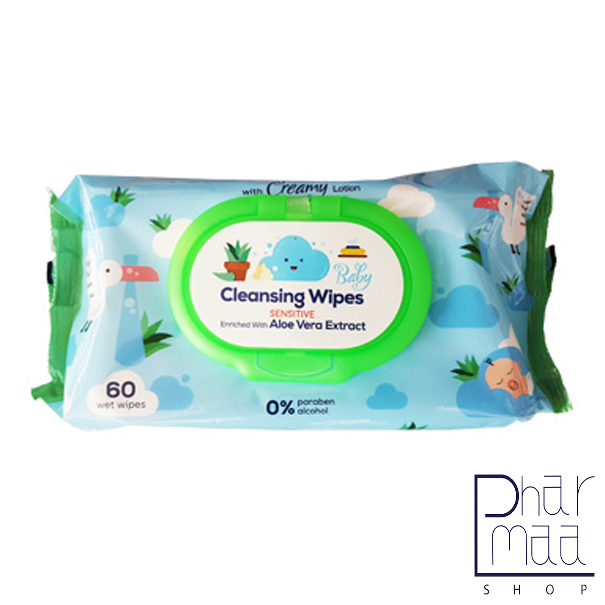 دستمال مرطوب پاک کننده کودک مناسب پوست های حساس حاوی عصاره آلوئه ورا کانواس 60 عددی
