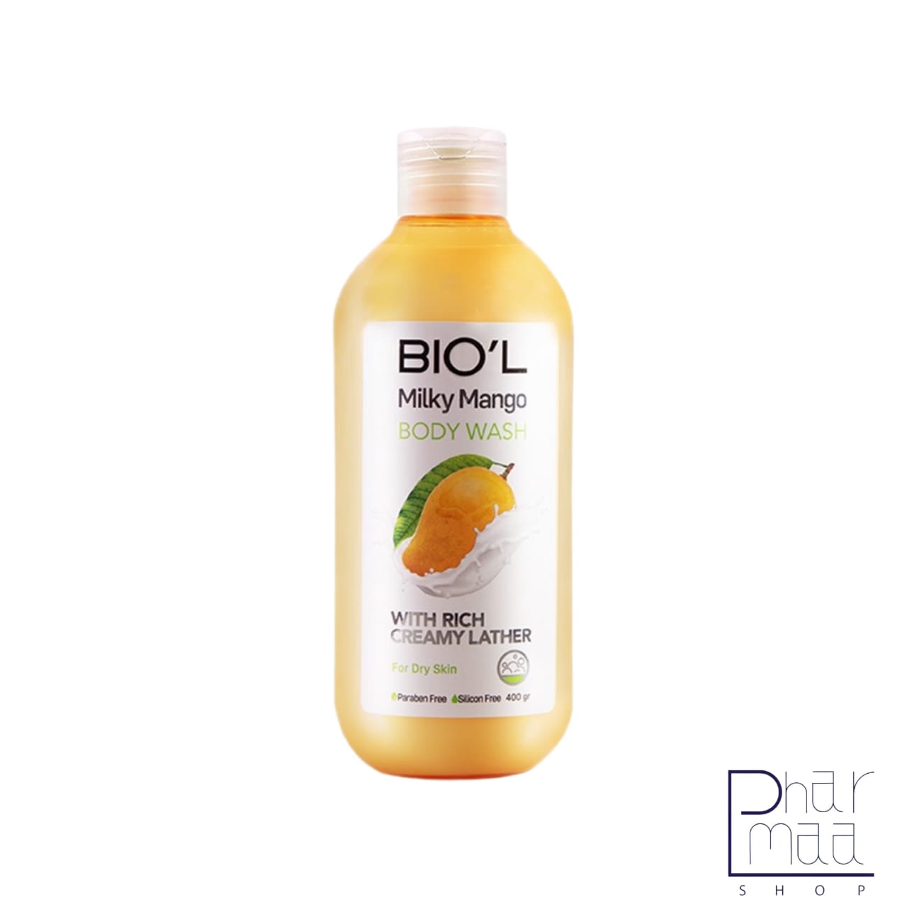 شامپو بدن کرمی مناسب برای پوست های خشک با عصاره شیر و انبه بیول 400 میل