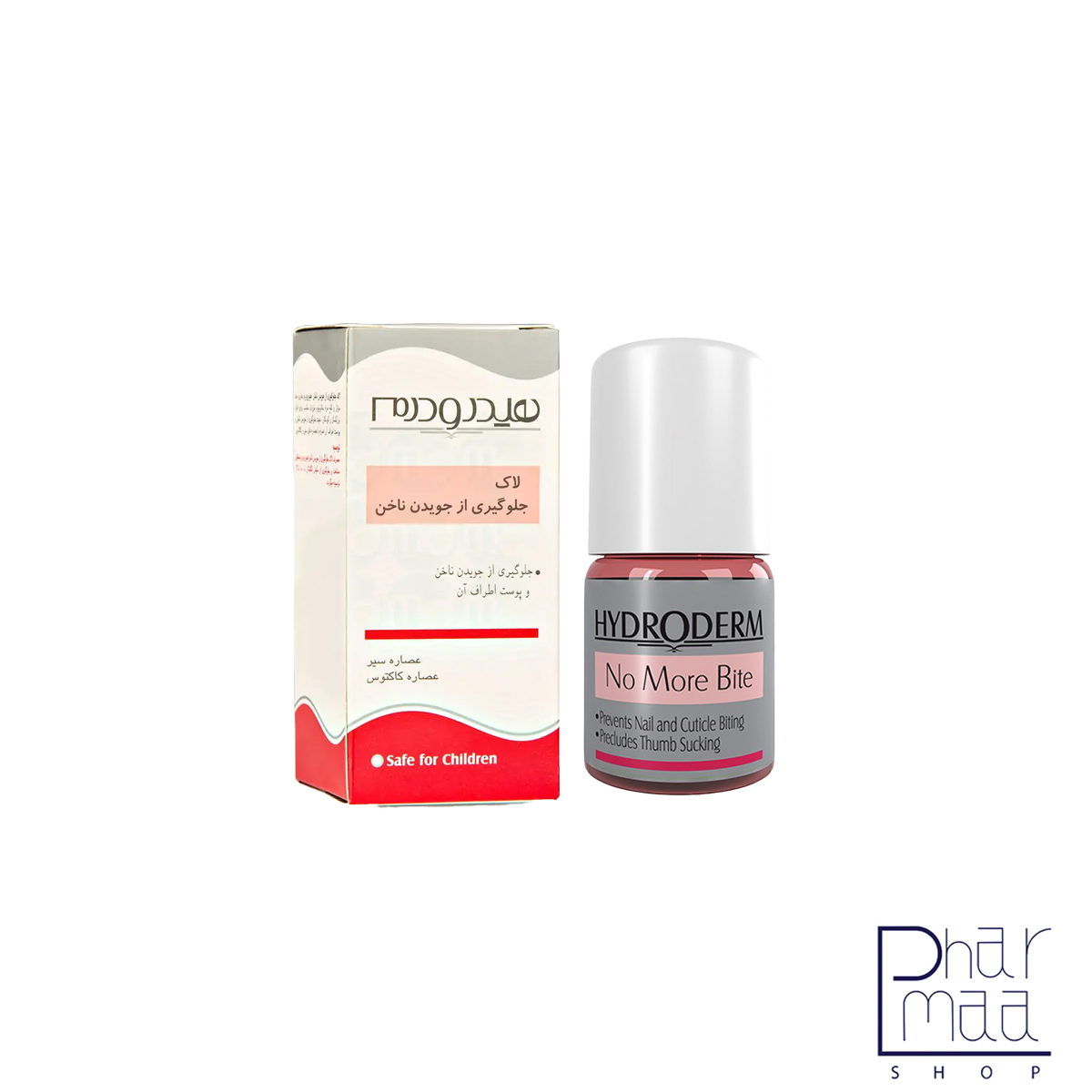 لاک جلوگیری از جویدن ناخن هیدرودرم حاوی ماده موثر و تلخ مزه دناتونیوم بنزوات، عصاره سیر و کاکتوس می باشد که به جلوگیری از جویدن ناخن و پوست اطراف آن و همچنین ممانعت از مکیدن انگشتان در خردسالان کمک می کند.