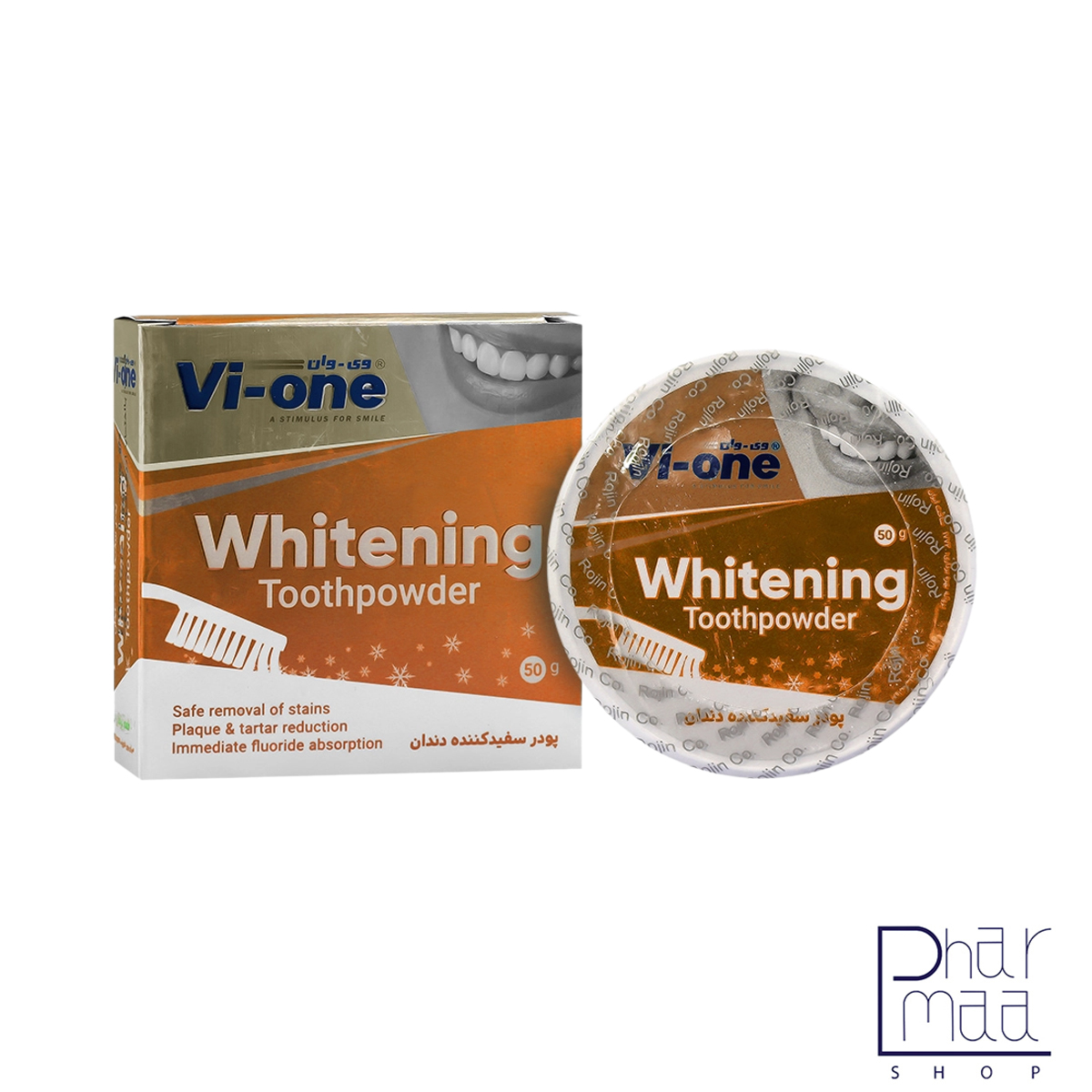 پودر سفید کننده دندان پرتقال وی وان جهت سفید شدن مینای دندان ها و از بین بردنده لک های ایجاد شده در اثر چای، قهوه و سیگار بوده و به کاهش موثر جرم و پلاک های دندانی کمک شایانی می کند.